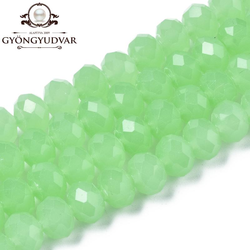 8 x 6 mm-es donut (ovális keresztben fúrt)  csiszolt üveggyöngy. A csomag 10 db gyöngyöt tartalmaz. Egységár: 12.-/db