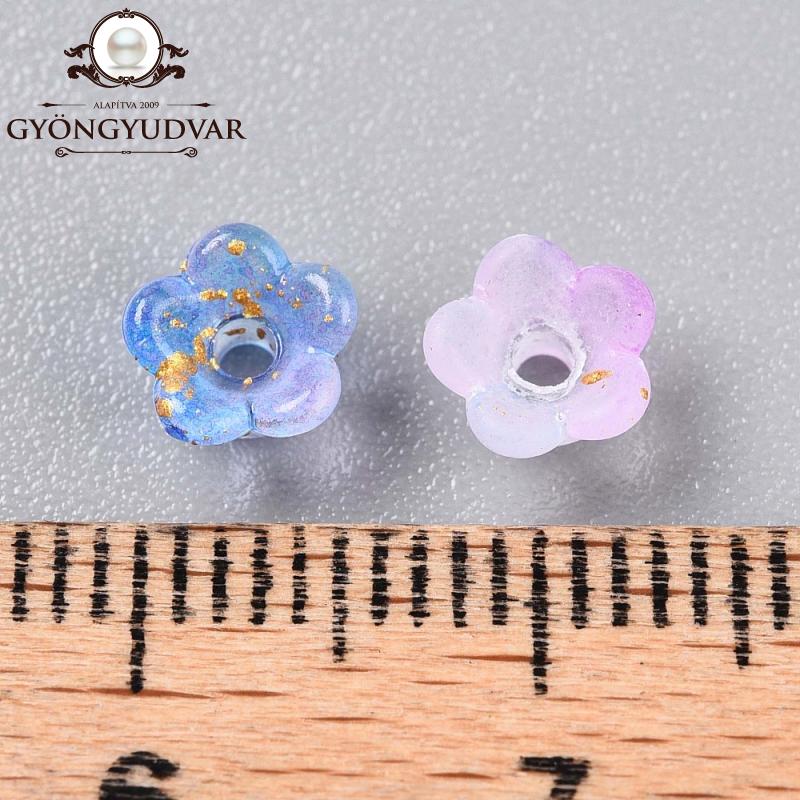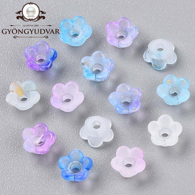 6 x 3 mm-es virág alakú akril gyöngy. Az ár 20 db virágra vonatkozik. Egységár: 8.-/db.