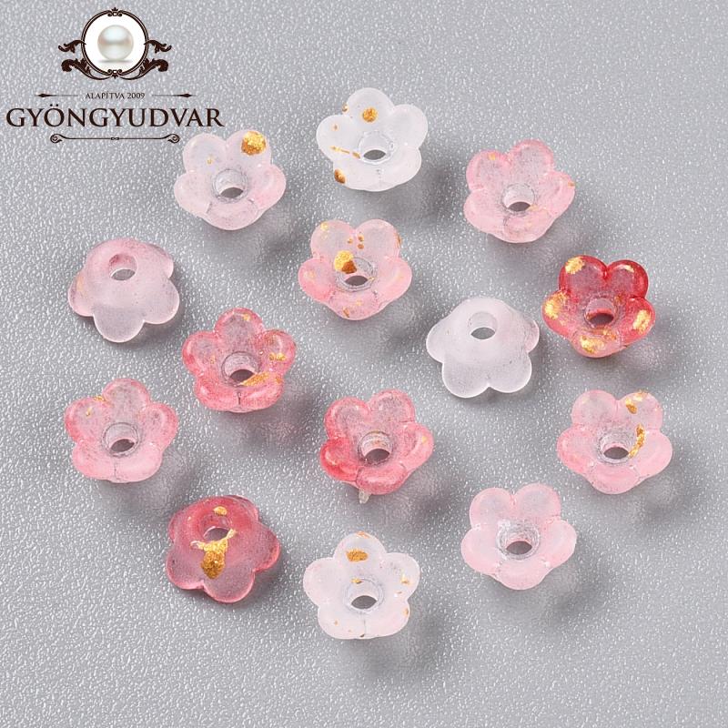 6 x 3 mm-es virág alakú akril gyöngy. Az ár 20 db virágra vonatkozik. Egységár: 8.-/db.
