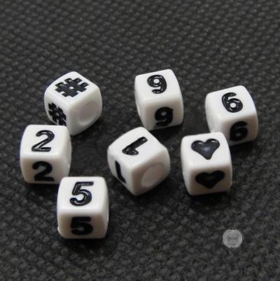 7 x 7 mm-es kocka alakú betűgyöngy. Lyukmérete kb. 3 mm. Az ár 1 db-ra vonatkozik.