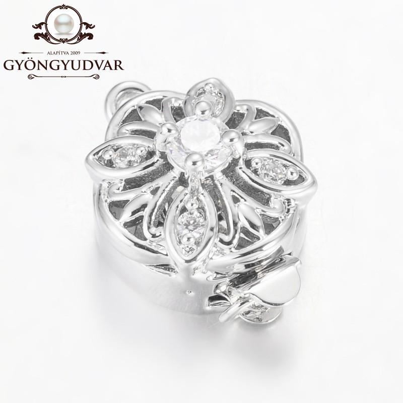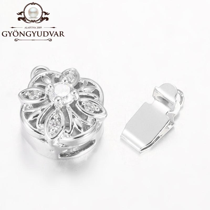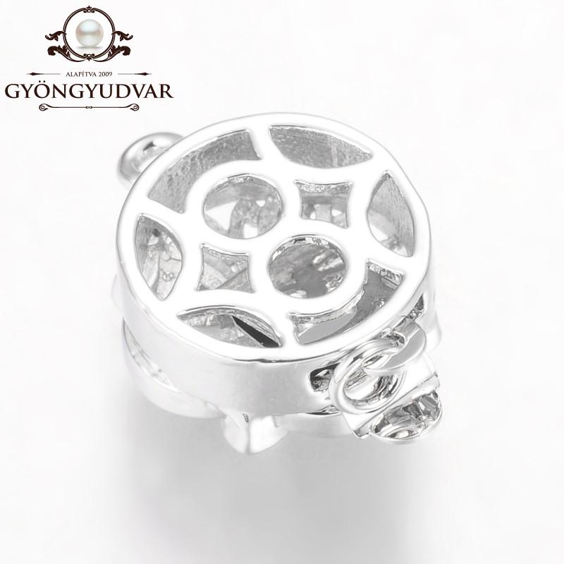 Cirkonia kövekkel kirakott nikkelmentes rézből készült kerek alakú házas kapcsoló. Mérete 18 x 13 x 9 mm. A csomag 1 párat tartalmaz.