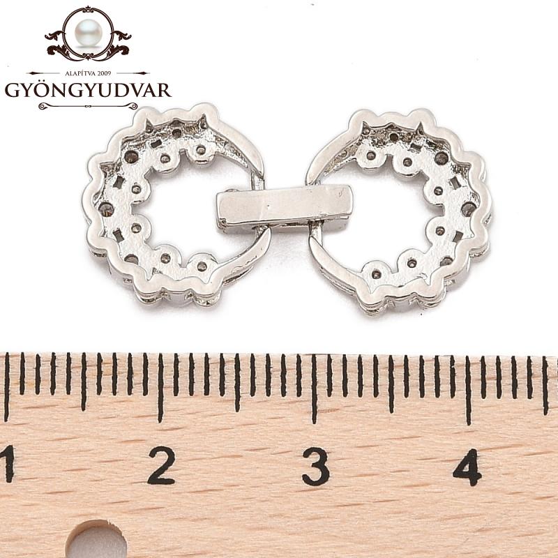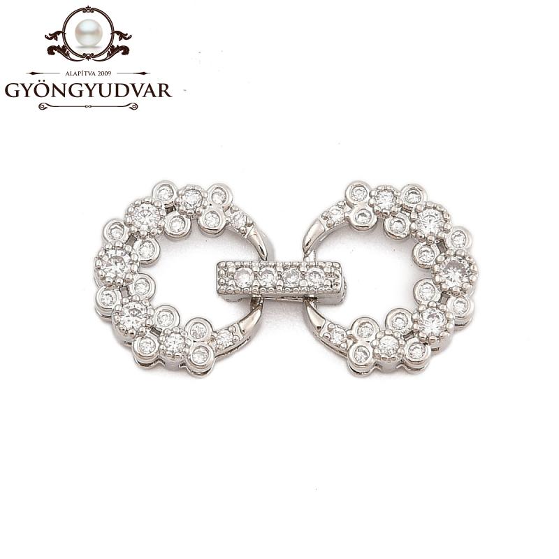 Cirkonia kövekkel kirakott nikkelmentes rézből készült kerek alakú kapcsoló. Mérete 27 x 13,5 x 4,5 mm. A csomag 1 párat tartalmaz.