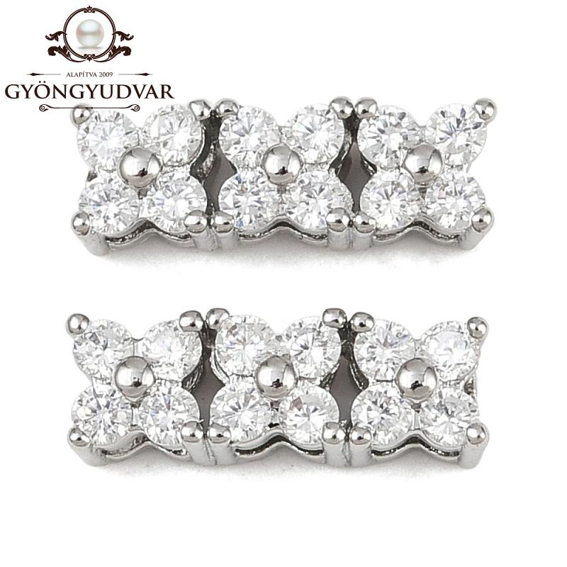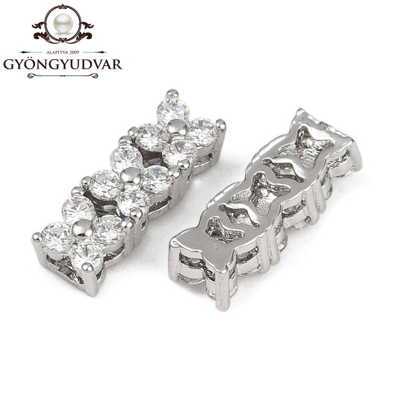 14 x 4,5 x 3,5 mm-es rézből készült, cirkónia köves platinum színű távtartó. Darabáras termék.