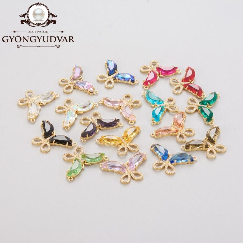 31,5 x 20,5 x 4,5 mm-es rézből készült, cirkónia köves arany színű távtartó. Darabáras termék.