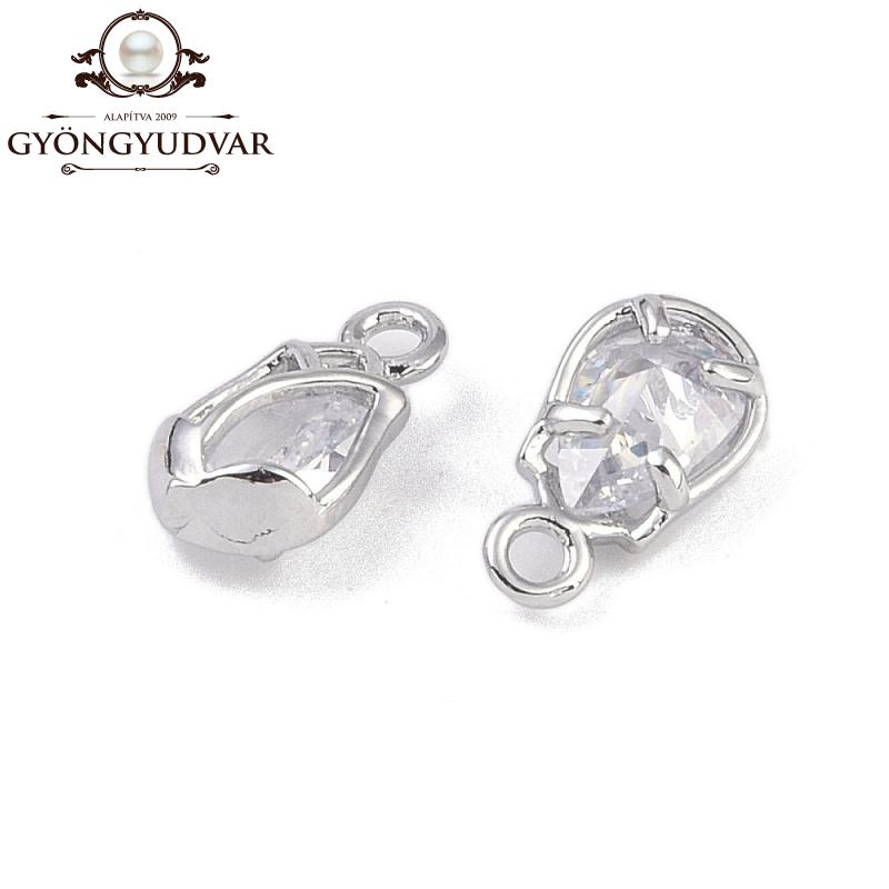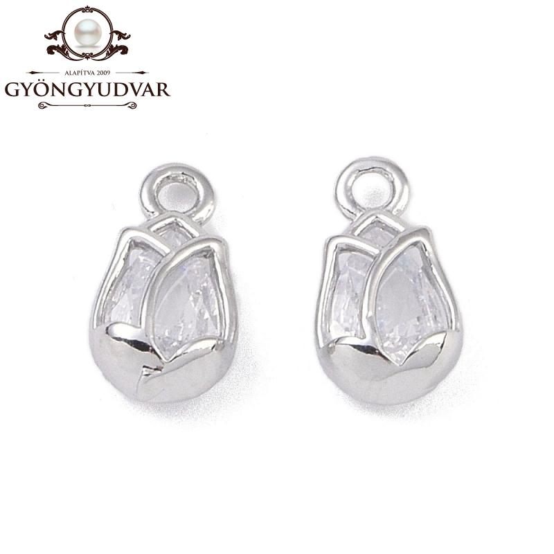 10 x 5 x 3 mm-es tulipán alakú rézből készült platinum színű cirkonia kővel kirakott medál. Darabáras termék.