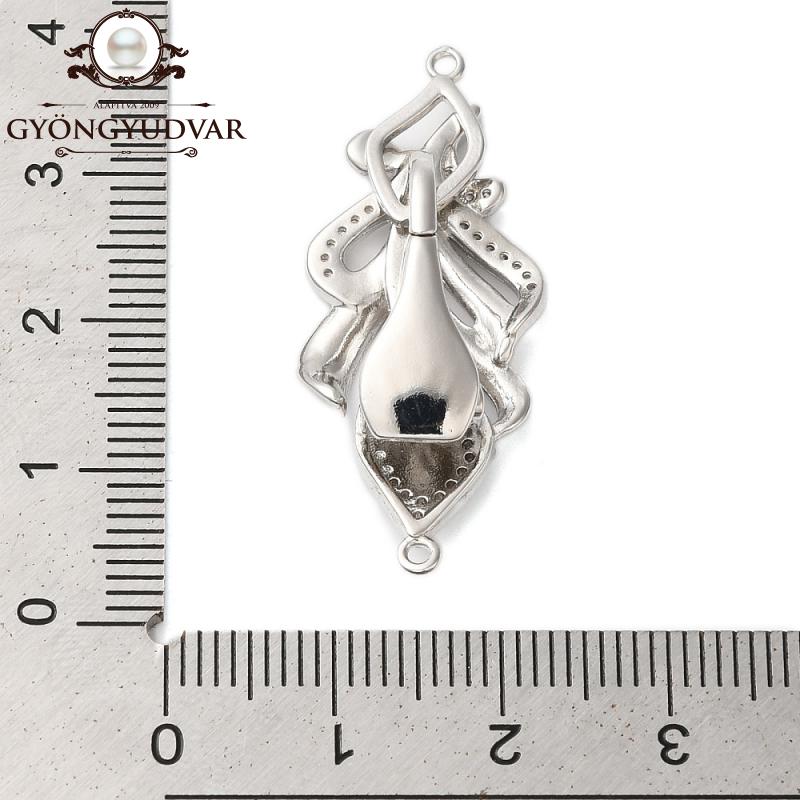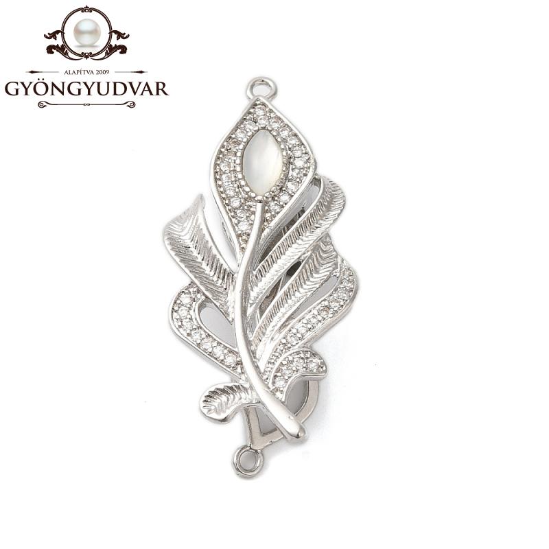 Cirkonia kövekkel kirakott nikkelmentes rézből készült madártoll alakú kapcsoló. Mérete 37 mm. A csomag 1 párat tartalmaz.