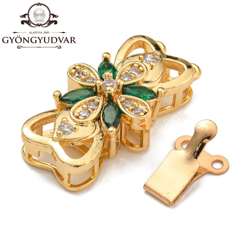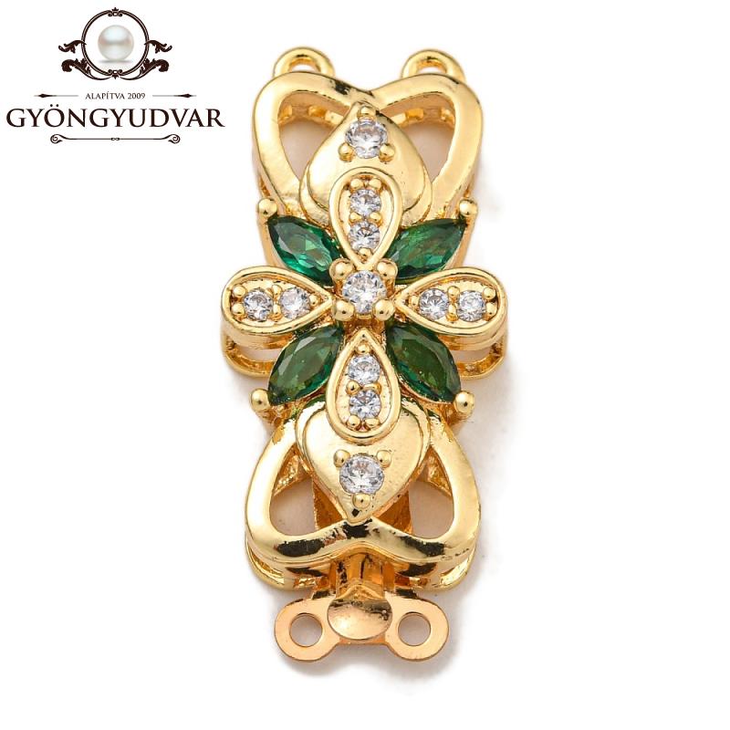 cirkonia masni alakú smaragdzöld köves két soros házas kapcsoló arany színű