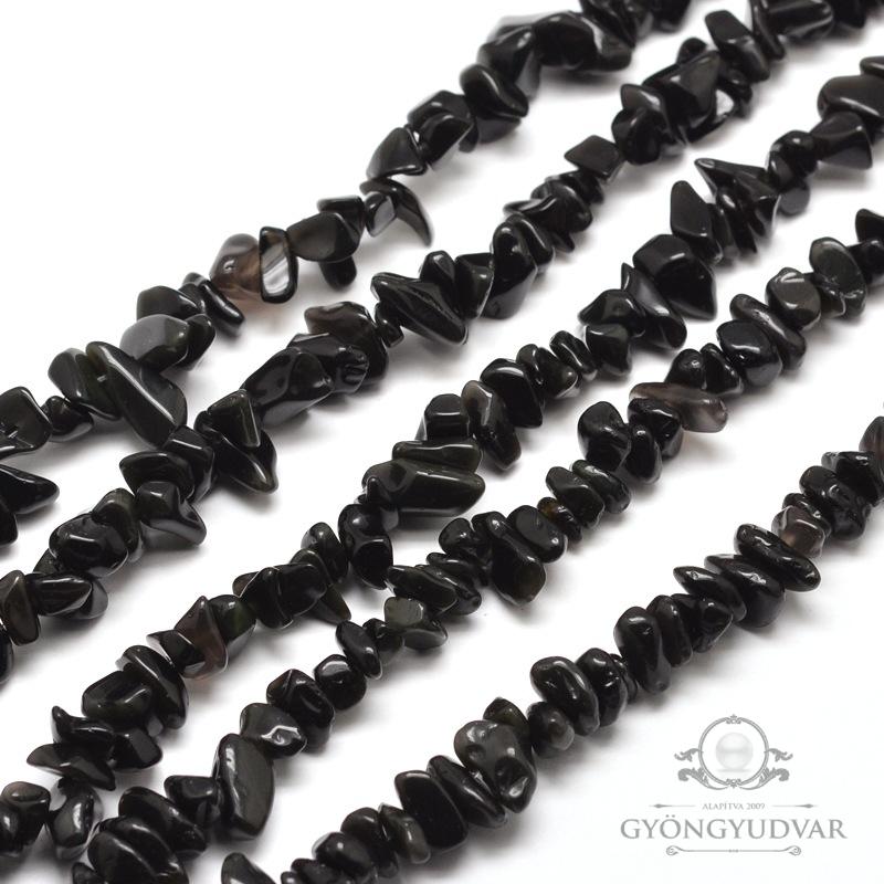 Átfúrt ásványdarabkák kb. 90 cm-es szálon.
