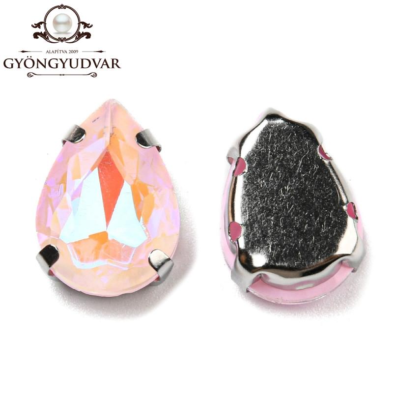 Üveg csepp platinum színű réz foglalattal. Mérete 14 x 10 x 5,5 mm. Az ár 1 db-ra vonatkozik.