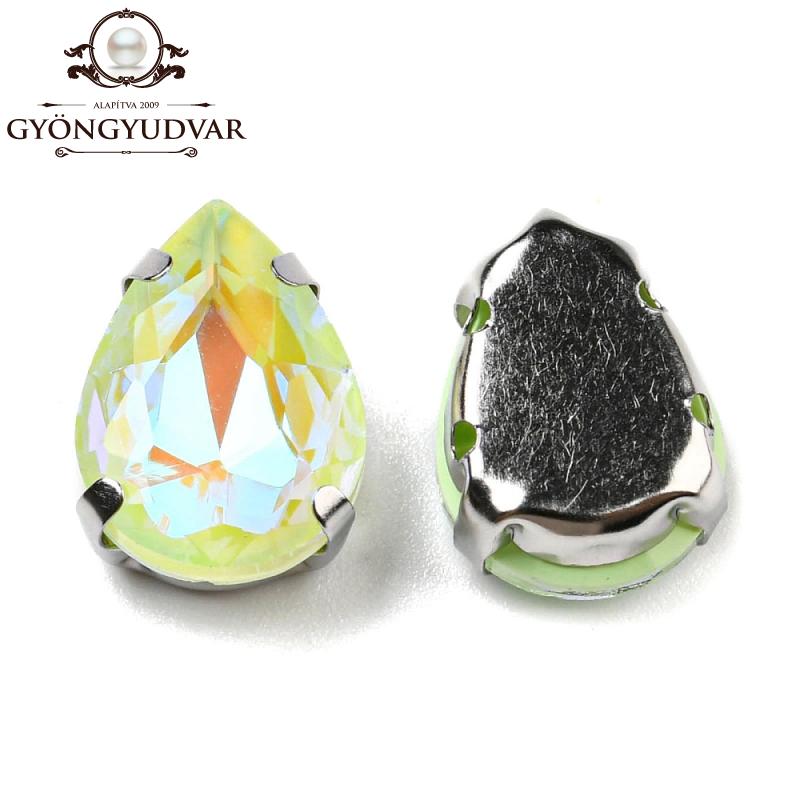 foglalatos üveg kaboson csepp 14 x 10 mm: fluorescent peridot
