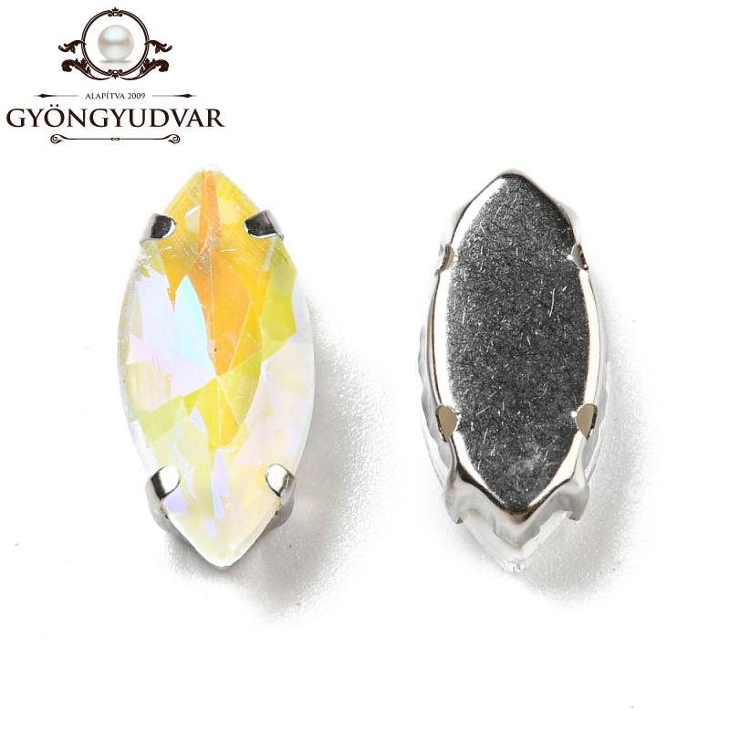 foglalatos üveg kaboson navette 12 x 6 mm: fluorescent crystal