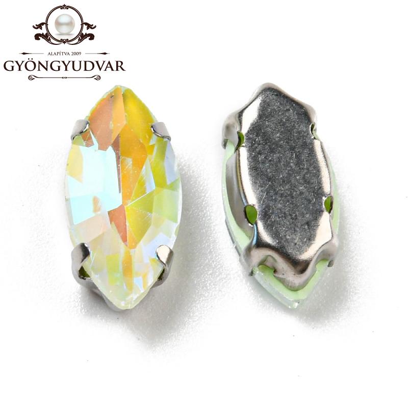 Üveg navette platinum színű réz foglalattal. Mérete 15 x 7 x 5 mm. Az ár 1 db-ra vonatkozik.