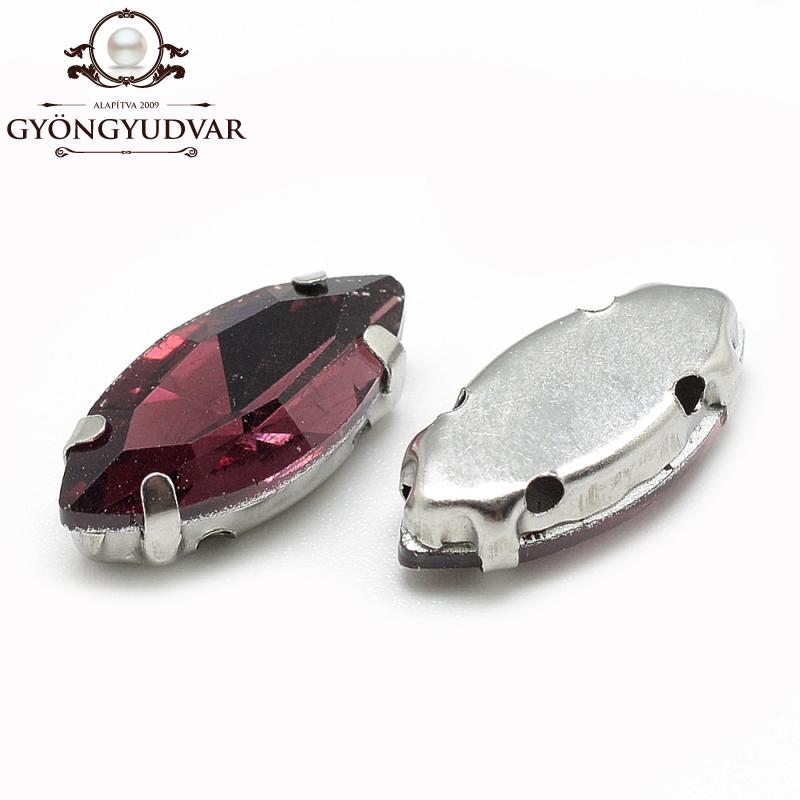 Üveg csiszolt navette platinum színű réz foglalattal. Mérete 10 x 5 x 4 mm. Az ár 1 db-ra vonatkozik.