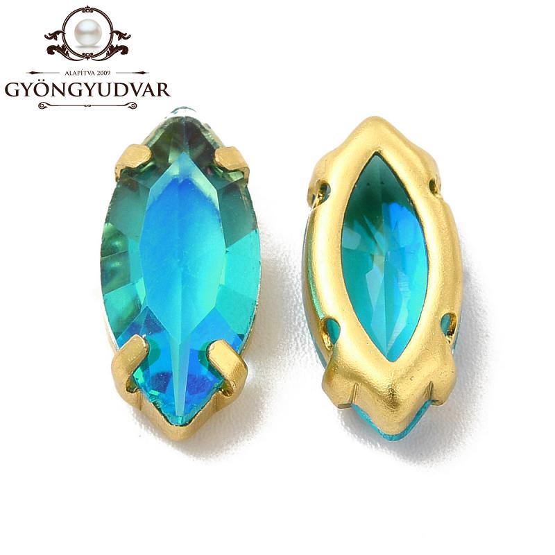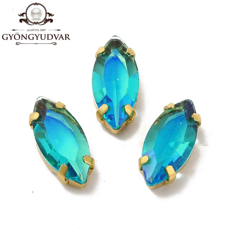 foglalatos üveg kaboson navette aquamarine-moonlight 15 x 7 mm