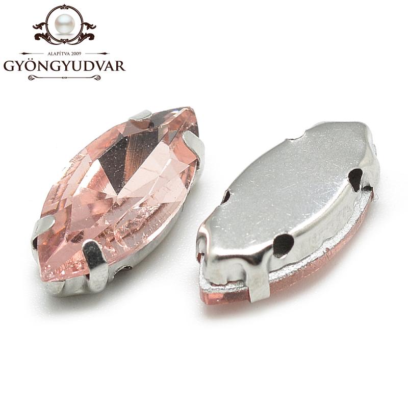 Üveg csiszolt navette platinum színű réz foglalattal. Mérete 10 x 5 x 4 mm. Az ár 1 db-ra vonatkozik.