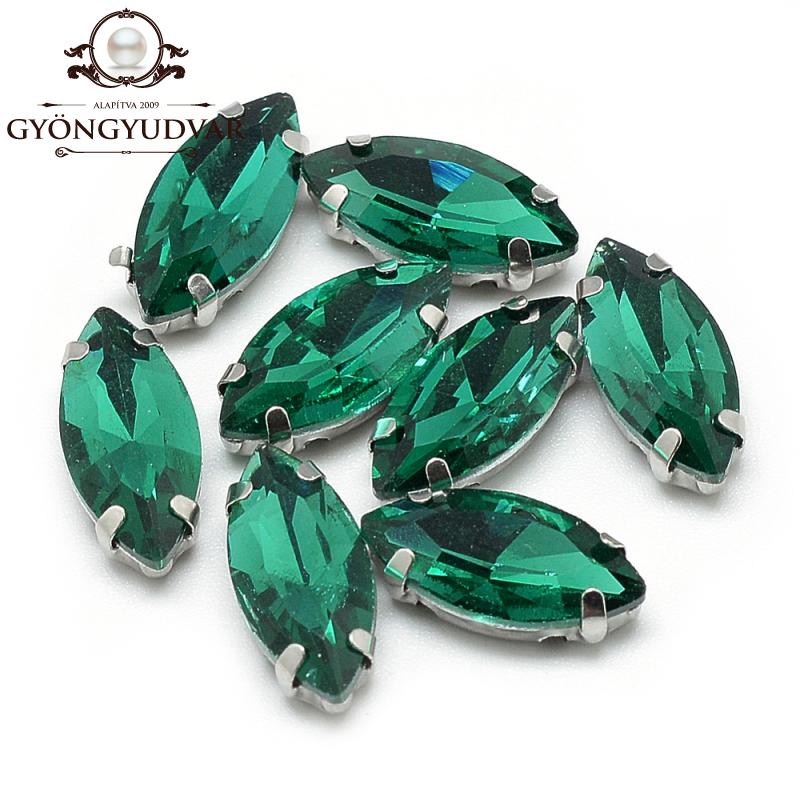 foglalatos üveg kaboson navette emerald 15 x 7 mm