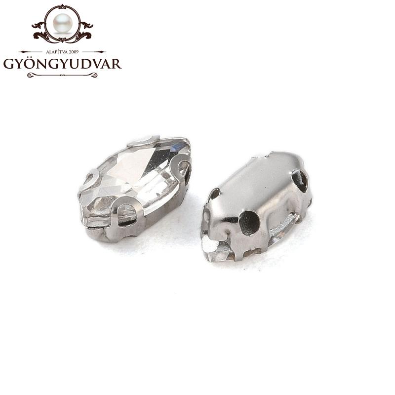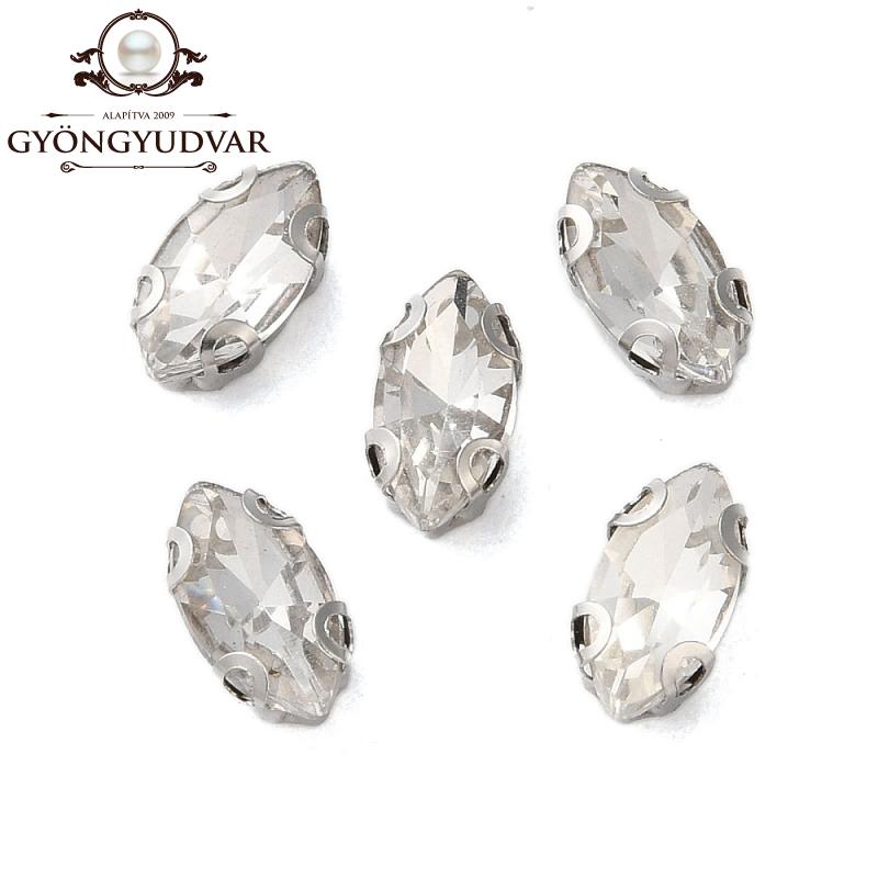 Üveg csiszolt navette platinum színű réz foglalattal. Mérete 8 x 4 x 3,5 mm. Az ár 1 db-ra vonatkozik.