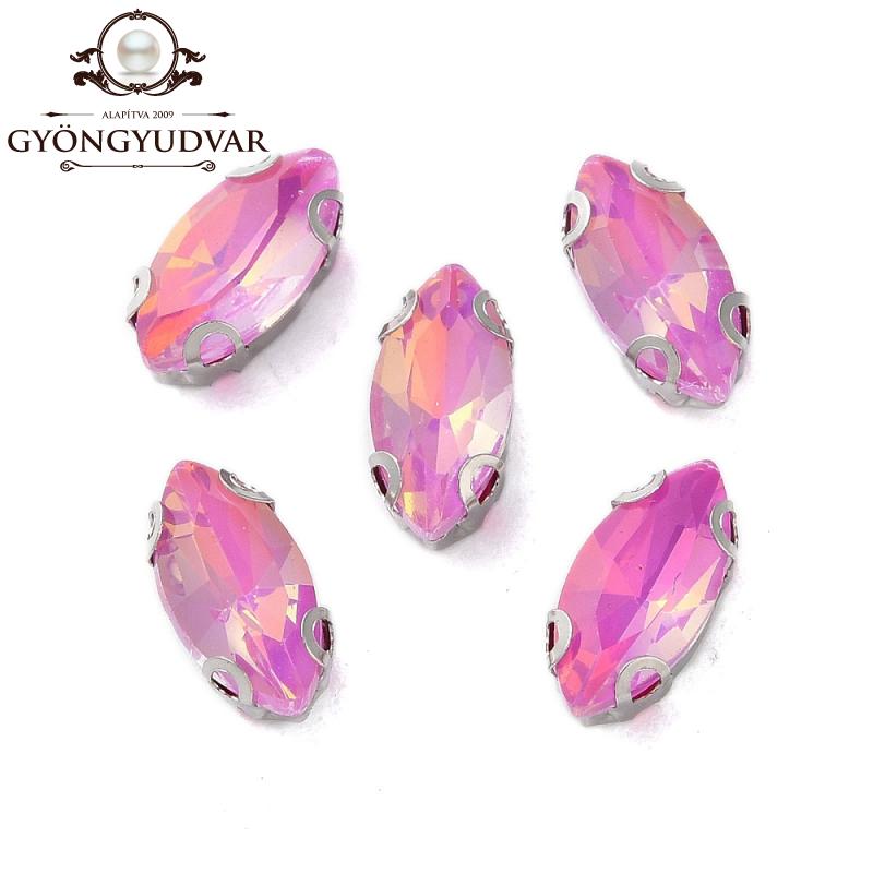 foglalatos üveg kaboson navette milky pink 10 x 5 x 4 mm