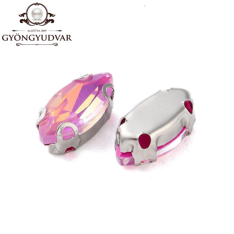 Üveg csiszolt navette platinum színű rozsdamentes acél foglalattal. Mérete 10 x 5 x 4 mm. Az ár 1 db-ra vonatkozik.