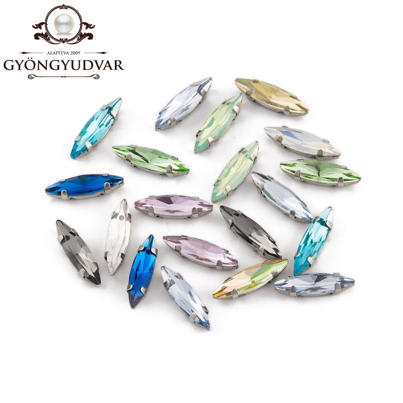 Üveg csiszolt navette platinum színű foglalattal. Mérete 14 x 4 x 4 mm. Az ár 1 db-ra vonatkozik.