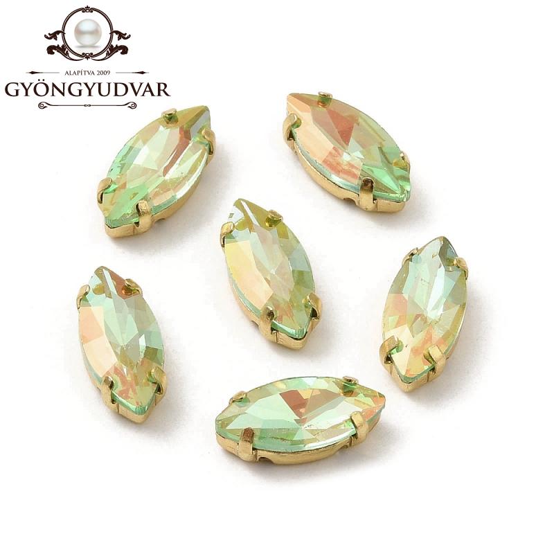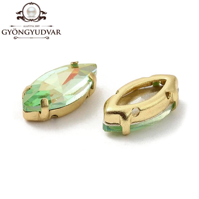 foglalatos üveg kaboson navette Peridot-Light AB 15 x 7 mm
