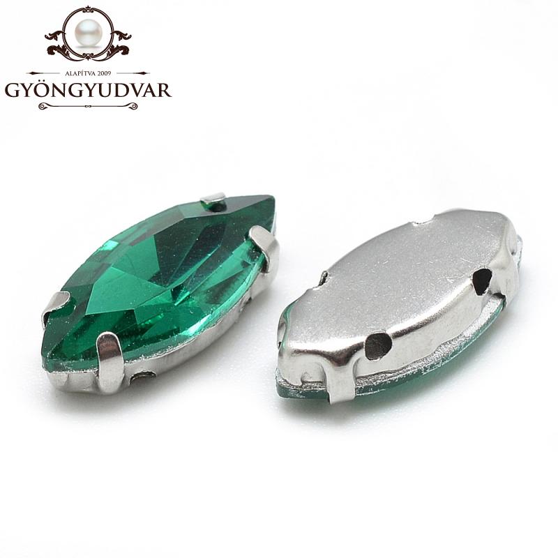 foglalatos üveg kaboson navette smaragdzöld 8 x 4 mm