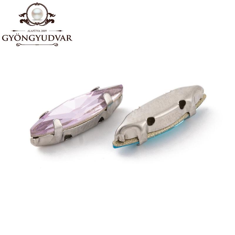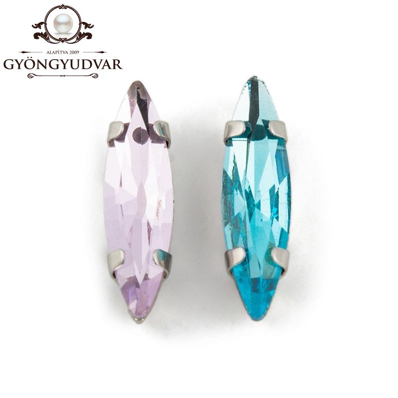 Üveg csiszolt navette platinum színű foglalattal. Mérete 14 x 4 x 4 mm. Az ár 1 db-ra vonatkozik.
