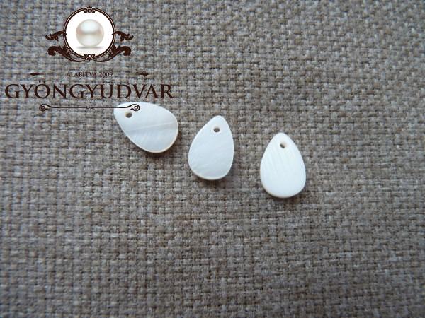 13 x 8 mm-es tetején furatos natúr csepp kagylóhéj medál közepén lyukkal. A csomag 1 db-ot tartalmaz. Minden cseppnek van valami baja, ahogy a képen látszik, ezért másodosztályú.