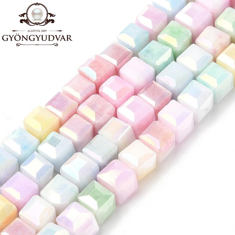 6 x 6 mm-es kocka üveggyöngy. Az ár 20 darabra vonatkozik. Egységár: 16.-/db. A furata nem minden gyöngynek esik középre, így némelyik gyöngy ferde, ezt kérem a vásárlásnál figyelembe venni.