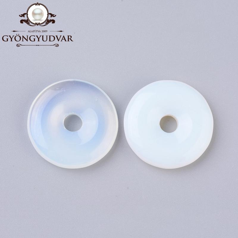 Körülbelül 30 x 12 x 6 mm-es szintetikus, üveg medál. Lyukmérete kb. 7-8 mm.