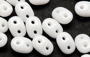 5x2,5 mm-es cseh superduo (kétlyukú) gyöngy telt fehér színben. A csomag 10 gramm gyöngyöt tartalmaz. Egységár: 990.-/dkg.