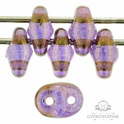 5x2,5 mm-es cseh superduo (kétlyukú) gyöngy vega (áttetsző lila arany lüszterrel) színben. A csomag 10 gramm gyöngyöt tartalmaz. Egységár: 945.-/dkg.