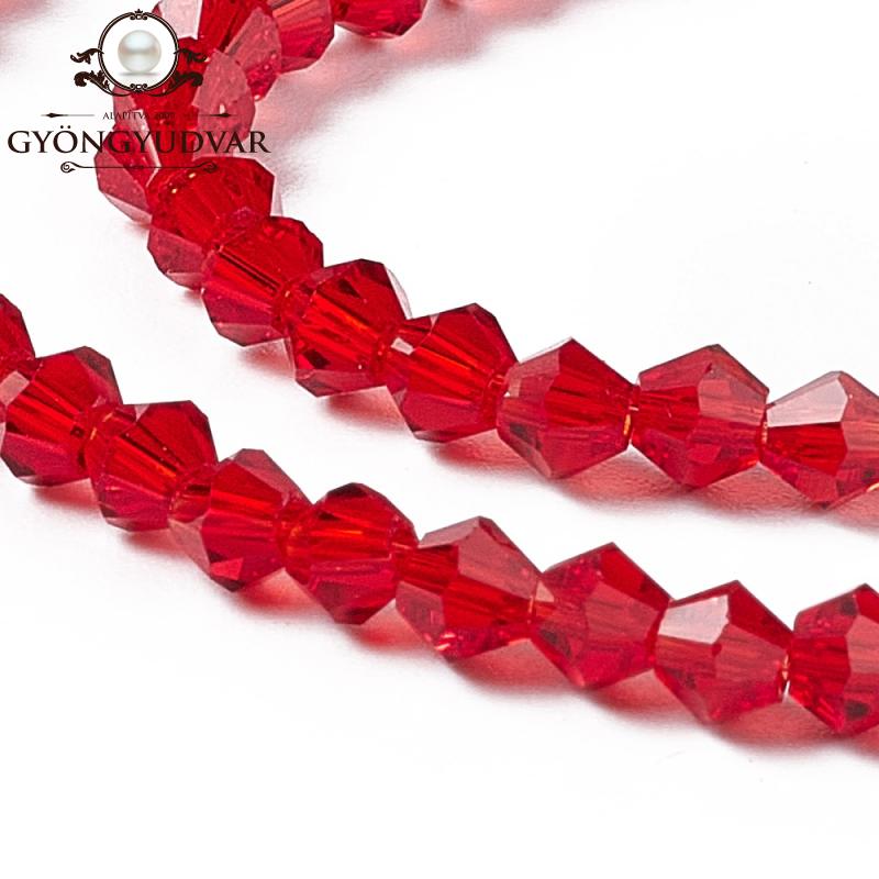 üveg bicone 3 mm áttetsző piros 20 db