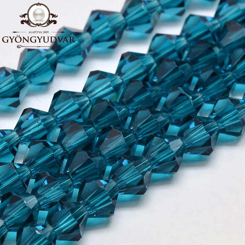 üveg bicone 4 mm áttetsző kékeszöld 20 db