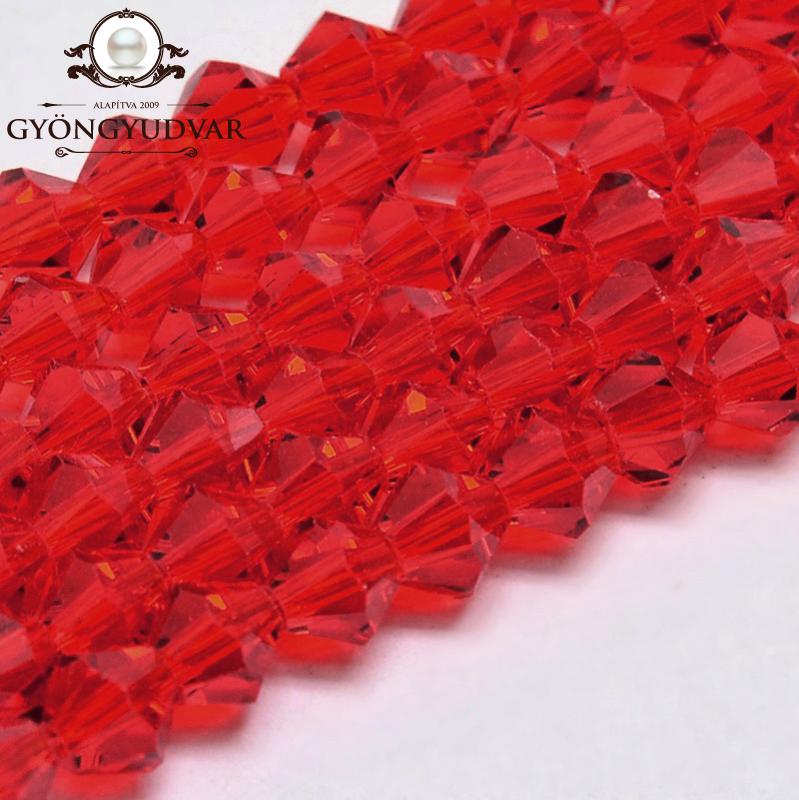 üveg bicone 4 mm áttetsző piros 20 db