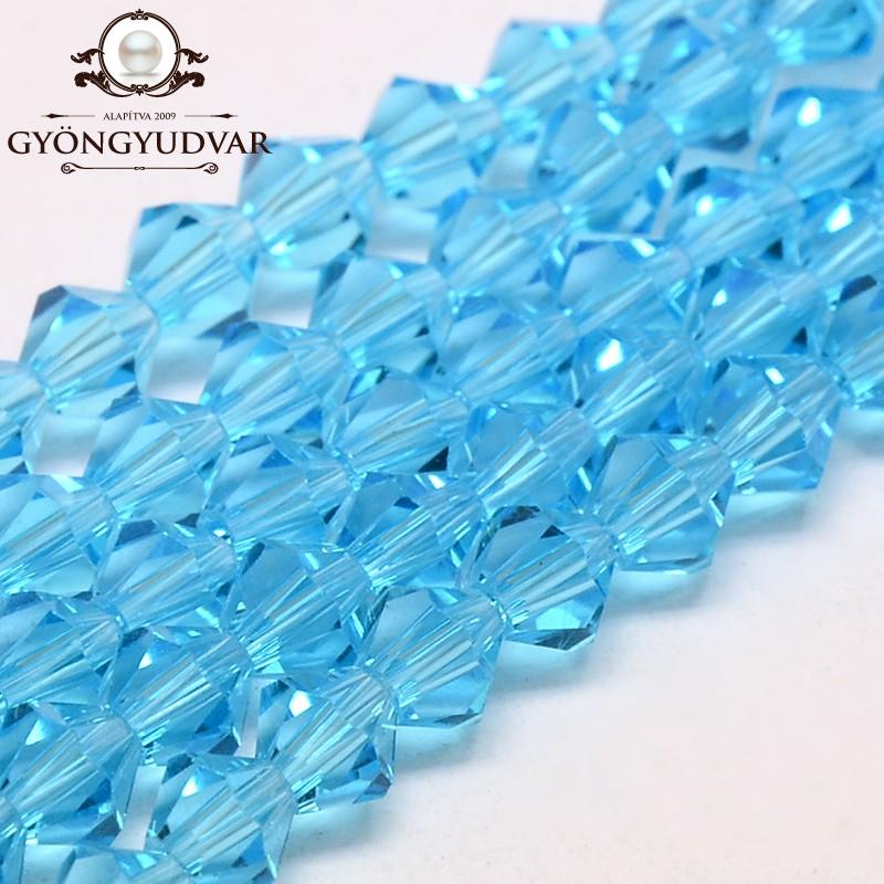 üveg bicone 4 mm áttetsző türkizkék 20 db