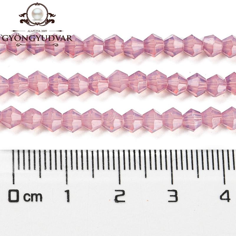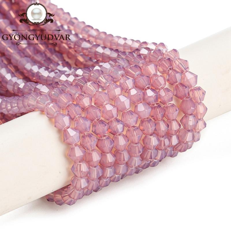 4 mm-es csiszolt kúpos üveggyöngy (bicone). A csomag 20 db gyöngyöt tartalmaz. Egységár: 12.-/db.