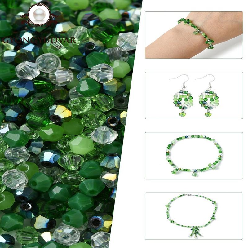 4 mm-es csiszolt kúpos üveggyöngy (bicone). A csomag 30 db gyöngyöt tartalmaz. Egységár: 8.-/db.
