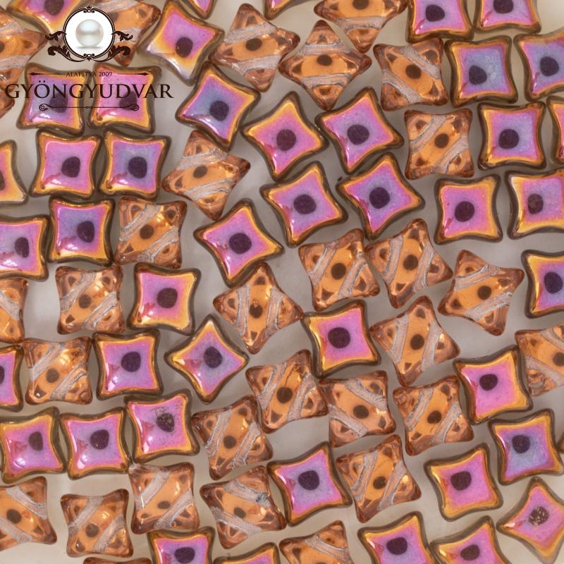 8x8 mm-es kétlyukú préselt gyöngy. Egy csomag 10 db-ot tartalmaz. Egységár: 35.-/db.